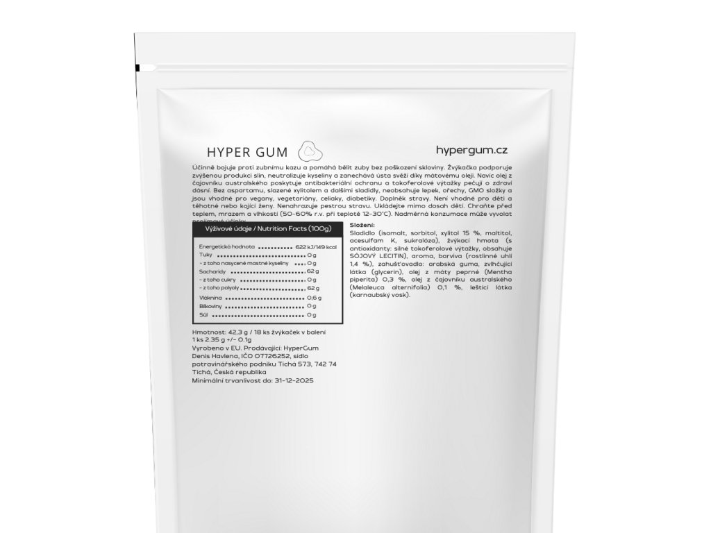 Doporučené dávkování: 1 žvýkačka po jídle, tekutinách a jiných.